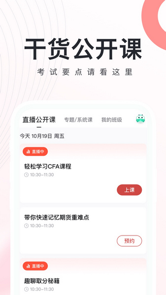 2、配有各类直播讲座,让用户了解CFA考试新动态