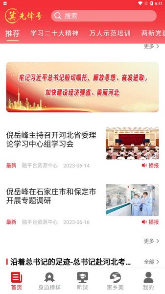 冀先锋号客户端是一款供河北地区党员使用的党建学习和资讯查看软件。这款软件为用户提供多种多样的党建学习资料, 各类最新的党内政治新闻,让用户能够及时学习最新的思想,提升党员思想的先进性。同时,软件内还有许多针对新思想内容的讲解,将基础知识系统化整理讲解,为高级课程内容准备好基础。