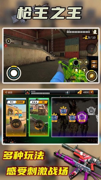 枪王之王无限金币版是一款精彩刺激的全新反恐枪战射击类游戏,不仅完美包含了众多FPS射击竞技玩法内容,更是精心开发设计了数十种与众不同的挑战模式可供你随意选择自由畅玩体验,而且你在枪王之王中可以通过不断收集解锁各种武器装备来有效提升自己的作战实力,合理组合搭配出强力的枪械阵容可以帮助你更加轻松的消灭掉更多的敌人,不过时刻小心警惕自身周边的环境也是一个上上之策。