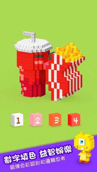 选择自己喜欢的3D像素模型,按照数字提示给像素块涂色即可完成。