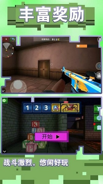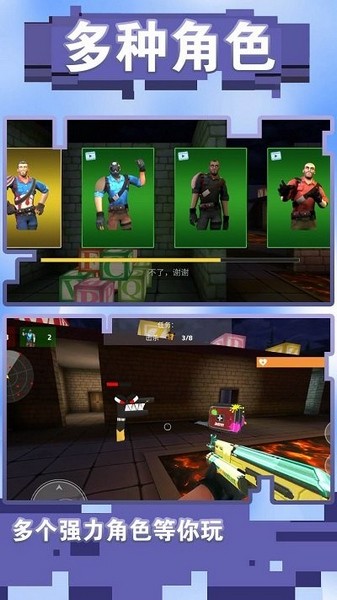 2、游戏人物和场景都采用3D建模方式制造,像素的画风让人思念,经典的第一人称射击视角