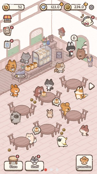 把饲养许多的小猫后,建成出色的小猫面包店, 成为出色的经营者吧。