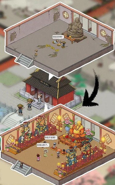 3.参与寺庙建设:初期寺庙非常简陋,但如果你用心经营,参与建设,寺庙则会重新修缮一新。