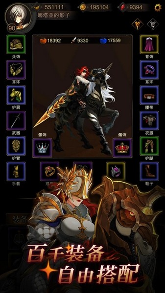 每一件装备都是随机生成属性,十七个装备部位自由组合搭配,策略无限。