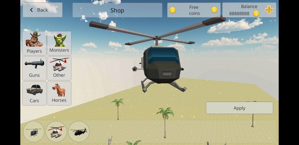 2、不同种类的武器,奇怪的角色,汽车,坦克和直升机。您还可以在大量对象上生成各种映射