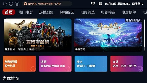 首先到本站下载四叶草TV并打开