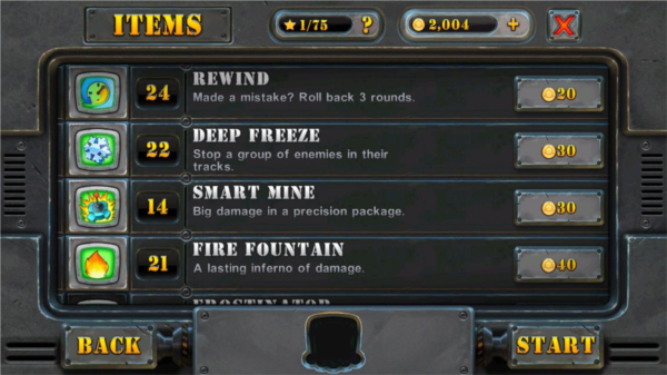 在布阵系统方面,游戏提供了极高的自由度,玩家可以自由设计炮塔的位置,甚至利用地形来延长防御线,让敌人迷失在复杂的布局中。武器道具的搭配也充满挑战性,每种防御塔都有独特的效果,比如减速、中毒、大范围伤害等,需要玩家不断探索才能解锁更多种类。