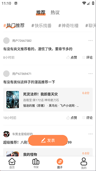 3、内置了一个漫画爱好者的乐园,在此您能够与其他用户畅所欲言地交流讨论喜欢的漫画作品,大方分享自己的阅读心得和思绪。您还能够关注您中意的漫画创作者,获取他们的最新动向和作品。