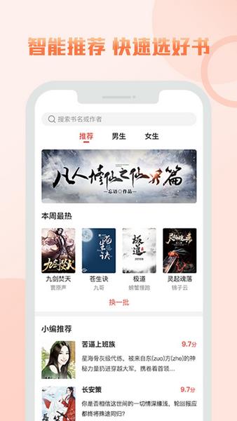 智能根据你的看书习惯,自动为你匹配你喜欢的小说,看小说也不用到处找了。