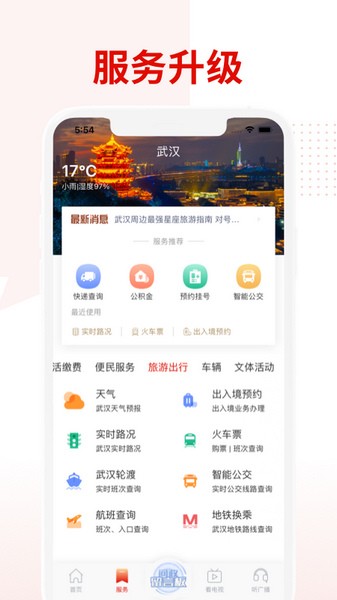 3、掌上武汉版面样式实现全面颠覆,UI设计与用户体验完美融合。