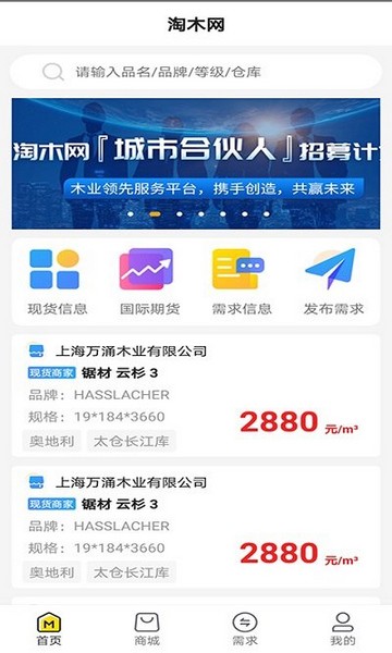 提供木材交易信息的专业木材软件。依托淘木团队多年对木材贸易行业的深入了解,提供一站式的在线木材跨境电商、供求信息对接。解决木材行业发展中的痛点,优化木材行业交易流程!操作简便化,功能模块专业化,更了解您的使用需求。