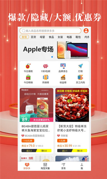 1.享受多平台优惠:您可以查看拼多多、淘宝、天猫、的商品和优惠券,高效省钱。