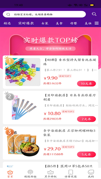 粘贴搜索,直接粘贴商品的标题即可进行快速的搜索优惠券;