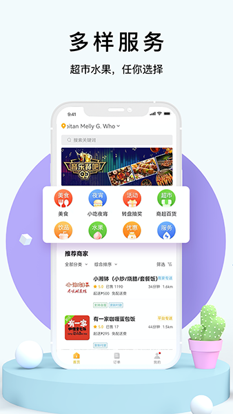 【品类丰富】周边各类外卖,中餐、西餐、快餐、简餐、火锅、烧烤、烘焙、汉堡、早餐、下午茶、夜宵、甜点、甜品、水果、鲜花、果蔬、生鲜、蛋糕、寿司、咖啡、超市购物,便捷生活,一手掌握,为您准时送达!