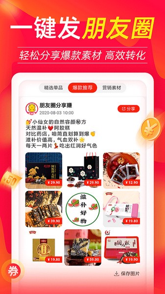 返利喵精选朋友圈商品素材,使用一键分享朋友圈,省时省力,高效转化,日进斗金