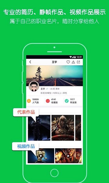 专业人才建立专业简历,在线展示作品,让行业专业人士看到,建立个人行业品牌!