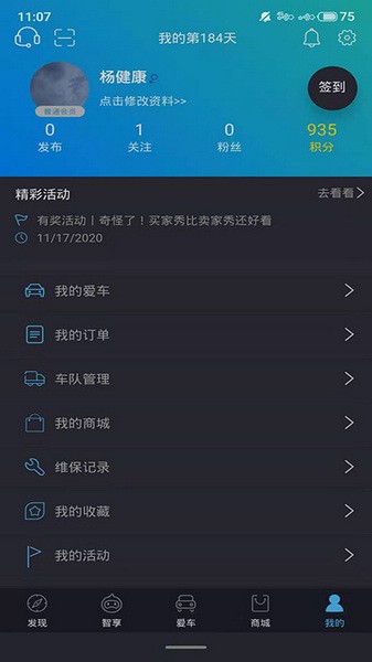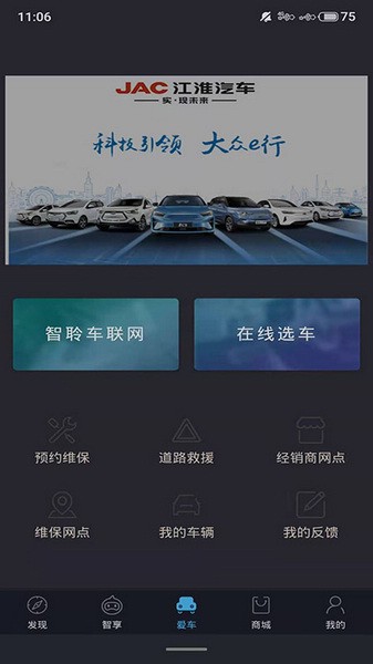 软件分为“发现”、“智享”、“爱车”和“会员尊享”四个模块,内容丰富多样。通过“发现”模块可以了解最新资讯、参与活动并分享内容,还能获取积分兑换福利;“智享”页面则提供车型展示、经销商查询以及一键救援服务,方便车主使用。“爱车”功能更是集成了20多项车联网服务,让车辆管理更加智能安全。