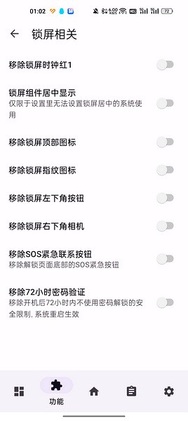 7、由于部分功能的作用域为系统框架,所以此类功能还要重启系统