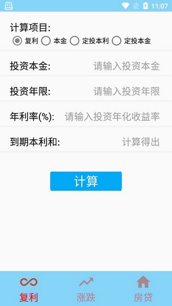 投资复利计算器app去广告版是一款简单又好用的计算工具,支持复利、涨跌以及房贷计算,功能全面计算快,真正满足大家日常的计算需求。此外,针对定投本利和定投本金等不同的情况,投资复利计算器app都给出的相应的计算方案,大家可以获得更加详细的计算结果,从而做出更加合适、更理性的投资判断,让自己可以更快了解到未来可能的获利情况。
