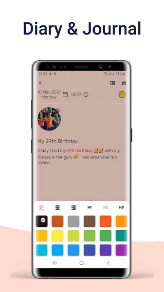 Daynote 提供多种颜色和字体来帮助您个性化您的体验。Daynote 允许您将图像添加到您的日记中。