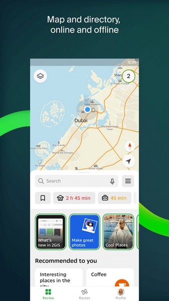 2GIS 了解您家里运营哪个经销商,哪有市医院或邮政局。将根据评价和相片协助您挑选咖啡厅或服务站。将表明上班时间和联系电话。