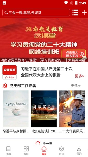 河南智慧党建app官方版是一个非常实用的党员教育平台,结合了互联网技术,让党建工作变得更加高效便捷。用户可以随时查看通知公告、观看远程教育视频,还能学习农业知识,功能很全面。