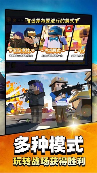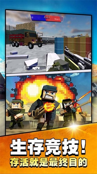 《吃鸡大战场免广告版》是一款像素风格的吃鸡射击游戏,画面可爱清新,玩法魔性有趣。五分钟一局的设计让你快速上手并秀出操作,还能化身“老六”隐藏战术偷袭对手。游戏里的声音效果诙谐逼真,配合方块人角色,带来全新的竞技体验。