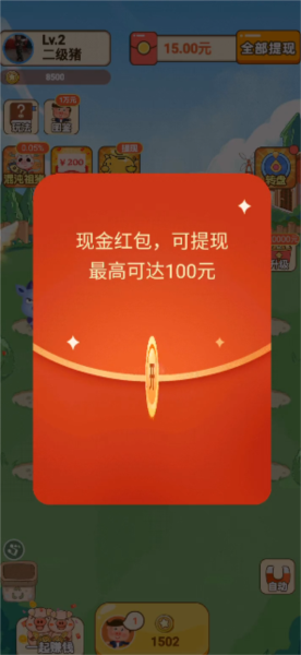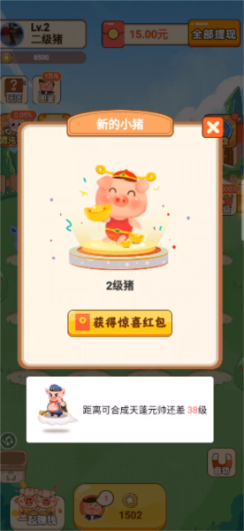 金币购买高级小猪: 获得金币购买高级小猪与它们一同成长。