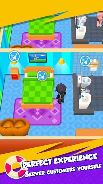 梦想酒店大亨游戏破解版是一款能够让大家实现酒店经营梦想的休闲手游,玩法简单又有趣,玩家们将在精美的卡通世界中成为真正的酒店大亨。当客人上门时,大家需要及时的完成菜品的烹饪,还需要尽可能快速的整理好房间等待顾客的入住。大量的事情都需要玩家们去一一安排,忙不过来的时候,大家也能够雇佣更多的员工来让酒店可以正常的经营下去。