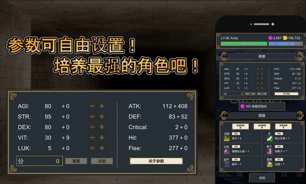游戏中的属性点分配也很讲究,前期命中率很重要,到了后期伤害和防御就更关键了。尤其是防毒属性,如果不留着的话可能会被秒杀。武器和装备可以通过击败怪物或在铁匠处强化来提升性能,这也增加了游戏的深度。
