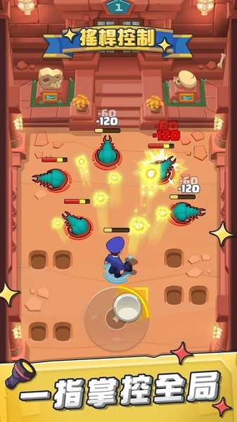 单手就能操作,透过萤幕中摇杆,控制小保全,打怪升级,守护等级。