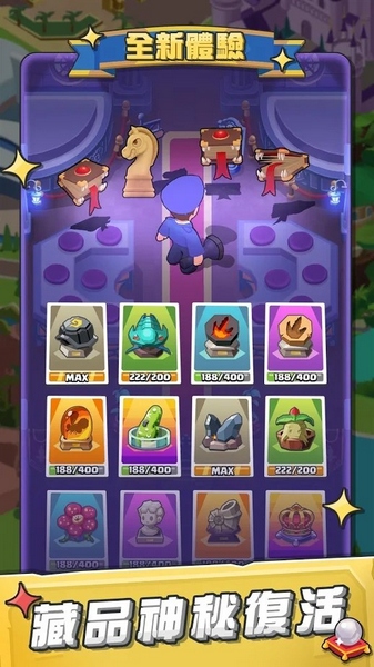 藏品大作战是一款安卓冒险手游,游戏中玩家要控制博物馆保安与复苏的展品进行战斗,打败这些神秘苏醒的史前生物和怪物,拯救博物馆和这个世界。游戏的战斗需要玩家灵活的反应力,只需要单手就能操作,轻松打败各种怪物。