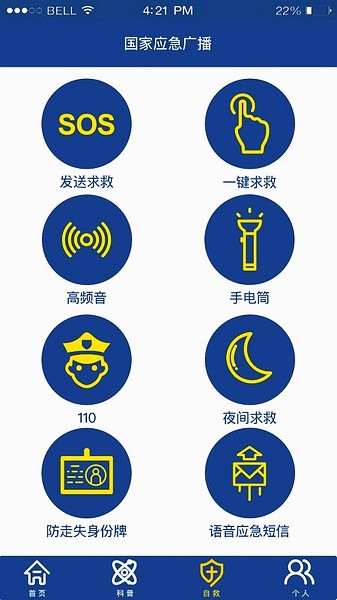 1、定向推送自救科普知识、应急新闻和预警信息,以GPS定位为核心呈现周边信息,搭建可视化的互救平台;提供一键求救等自救工具功能。