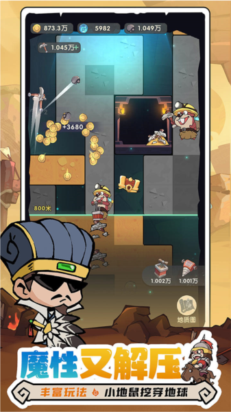 宝物的品质随着地层等级的增加而提高,所以多消耗镐子进行挖掘,有助于获取核心资源:金币(升级家园用)、黑铁(升级地层用)、宝物(装备的一种,能提高各种属性)等,可装备的宝物数量也会随着时代推进解锁更多格子。
