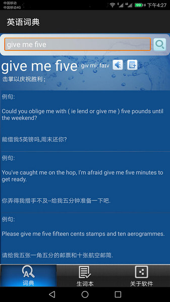 这款英语词典app绝对是你学习英语的好帮手!它不仅支持离线使用,还能查到3万多条单词,包括音标、解释和例句,特别适合学生党。最让我觉得方便的是它的生词本功能,可以同步到手机、电脑和网站,随时随地背单词都超级方便。而且界面设计也很清爽,操作起来一目了然。