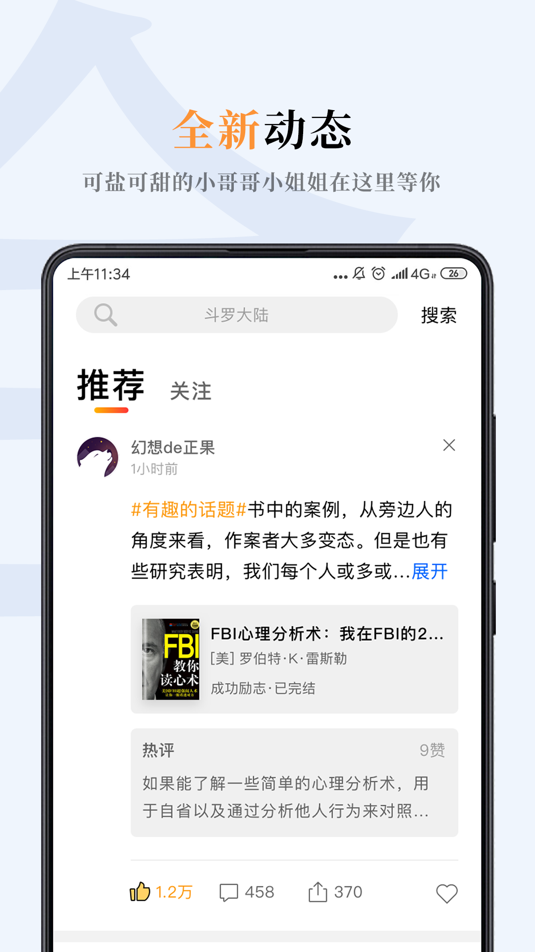 小说分类齐全,你想看的书在这里都能找到,热门小说全本免费,免费看正版书~免费小说大全,小说阅读器,免费小说下载。百万部玄幻、武侠、言情、都市、穿越、宫斗、历史、军事、热门、网络、经典小说样样俱全任你阅读,小说更新实时提醒,追书也是件幸福事。 更有吐槽交友等多位一体的交友社区,3亿用户等你来high!