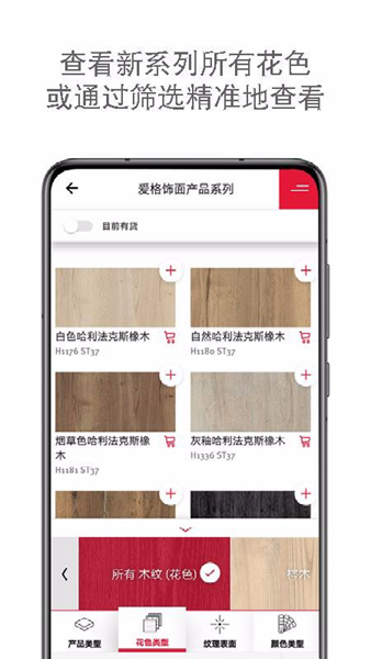 2、在这里,用户能够在线查看产品的纹理表面和颜色类型,方便用户了解;
