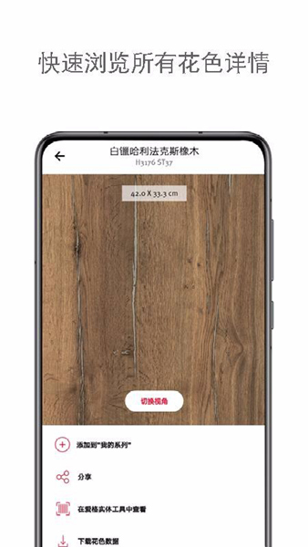 我感觉这个软件特别适合那些对装修没头绪的新手,因为它不仅有详细的产品信息,还支持视频查看、视角切换等功能,能全方位了解每一种花色。特别是它的扫描功能,可以直接扫描实景房间,获取花色数据,听起来真的很实用!再加上收藏和分享功能,简直是为喜欢折腾装修的人量身定做的。