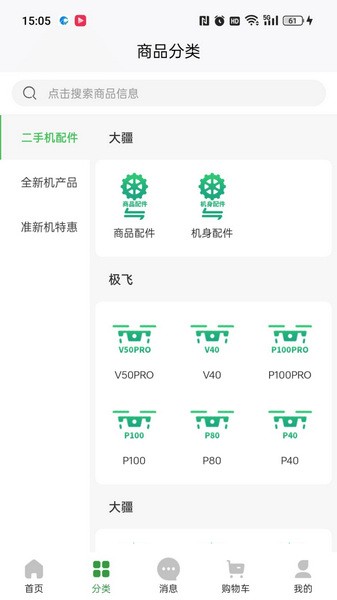 提供二手航拍机、行业机及配件的在线购买服务,满足特定用户的需求。