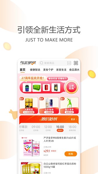 首页每日更新包括9.9包邮、全网精选爆款、高额返利商品等专区,让你省钱同时轻松赚零花。