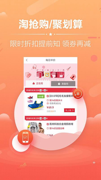 3、限时抢购商品整点推出,用户可以准时参与抢购,优惠下单;