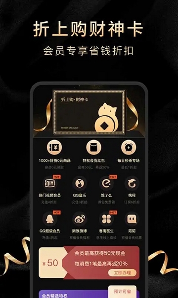 还有首单全返和终身免费会员这些亮点设计,感觉像是为剁手党量身定做的省钱神器。线上线下的消费场景都覆盖到了,随时随地都能享受折扣福利。对于喜欢网购的人来说,在APP里直接跳转到淘宝、美团等平台还能继续用优惠券下单,这种无缝衔接的设计真的很贴心。