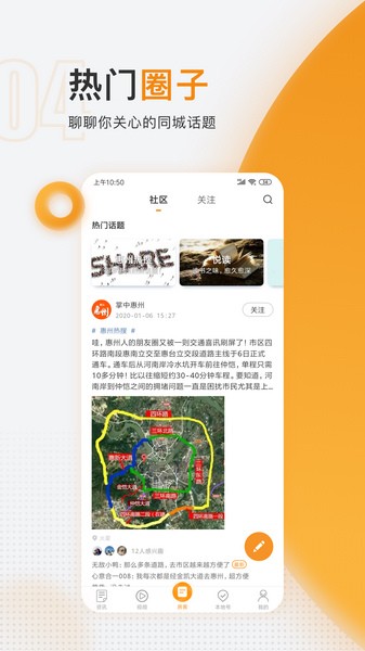 同城闲置、亲子圈、租房找房、热点爆料、美食优惠等等;一起发现身边人的新鲜事,共同参与讨论感兴趣的话题。