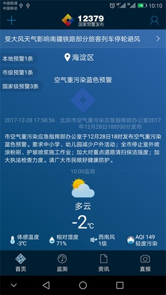 2、切换到【监测】页面,我们还可以查看当日国内的所有生效预警信息
