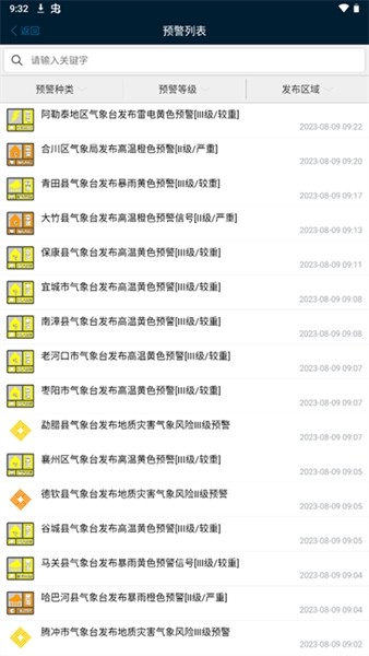 1、用户们随时都能来根据平台发布的气象预警来做好相应的防范工作。