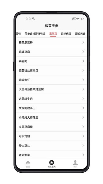 做菜宝典app是一个非常有趣的学习做菜软件,软件内为大家提供了许多不同菜系的菜谱,不管大家喜欢什么类型的,都可以在平台内找到自己喜欢的菜谱,其中包括川菜、湘菜、江浙菜、粤菜、家常菜等食谱,同时还有西餐、甜品等,满足用户们的不同使用需求,而且里面还有许多视频教程,每一个步骤都非常详细,即使是新手小白也可以轻松做出许多美食!