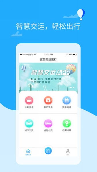宜昌交运出行App为已实名制一卡通提供充值功能,只需一部具备NFC功能的安卓手机和一张一卡通,便可快速完成一卡通充值服务,免去排队之忧,让用户享受安全、便捷的实时充值服务。
