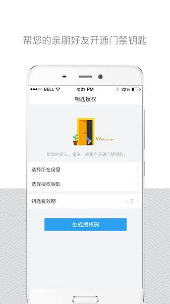 6、用户可设置钥匙的有效期限,快速的生成授权码,授权给亲友;