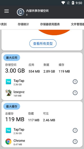 友好的用户界面允许您在多种模式以及页面中快速切换,My Device Storage Analyser 所使用的视图界面与 Google Play 一般。
