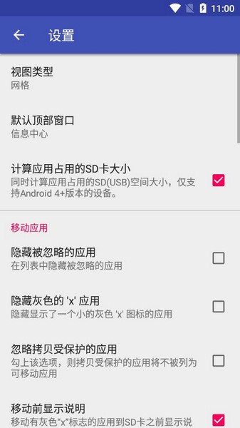 它可以帮助您通过系统设置来将应用程序移动到内部或外部存储,而且会自动检测可/不可移动以及SD卡中的应用程序,并将其分窗口显示,而且支持一键移动所有应用程序,非常方便。
